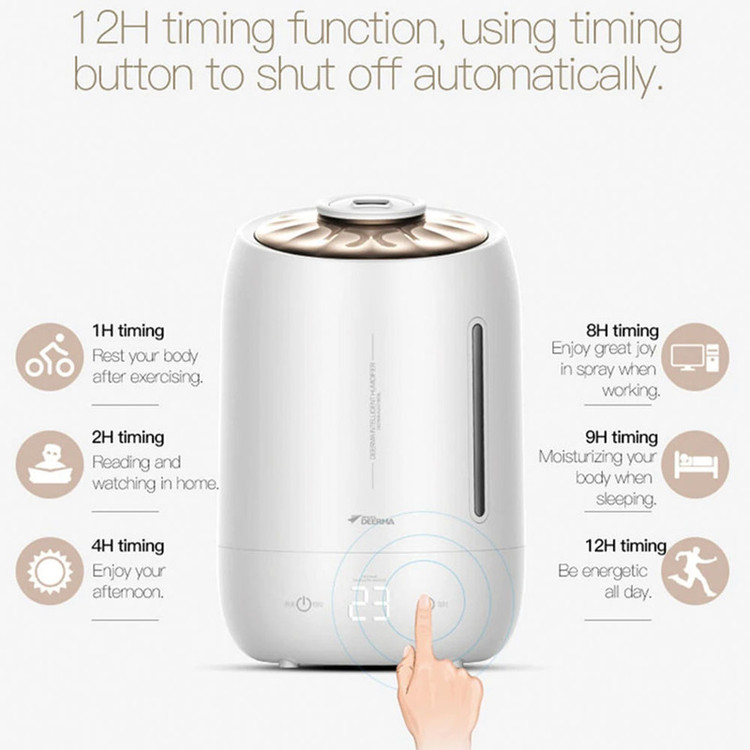 دستگاه بخور سرد Deerma مدل DEM-F600 با افزایش رطوبت محیط، به بهبود کیفیت هوای فضای داخلی و ایجاد هوایی مطبوع کمک میکند. این دستگاه با طراحی کاربردی خود، برای اتاق خواب، منزل یا محیط کار گزینهای ایدهآل محسوب میشود و توانایی تأمین رطوبت کافی برای فضاهای مختلف را دارد. مخزن آب ۵ لیتری آن در قسمت بالایی قرار گرفته و بهراحتی قابل جدا شدن و پر کردن است. یکی از ویژگیهای برجستهی Deerma DEM-F600، نمایشگر دیجیتال آن است که علاوه بر نمایش وضعیت عملکرد دستگاه و میزان بخاردهی، دمای محیط را نیز پس از ۵ دقیقه اندازهگیری و نمایش میدهد. این مدل همچنین از قابلیت زمانبندی (Timer) برخوردار است تا بتوانید عملکرد دستگاه را برای مدت مشخصی تنظیم کنید؛ قابلیتی بسیار مفید بهویژه هنگام خواب شبانه. Deerma DEM-F600 دارای سه سطح مختلف بخاردهی است که تنها با فشار یک دکمه قابل تنظیم بوده و امکان کنترل میزان رطوبت محیط را متناسب با نیاز شما فراهم میکند.