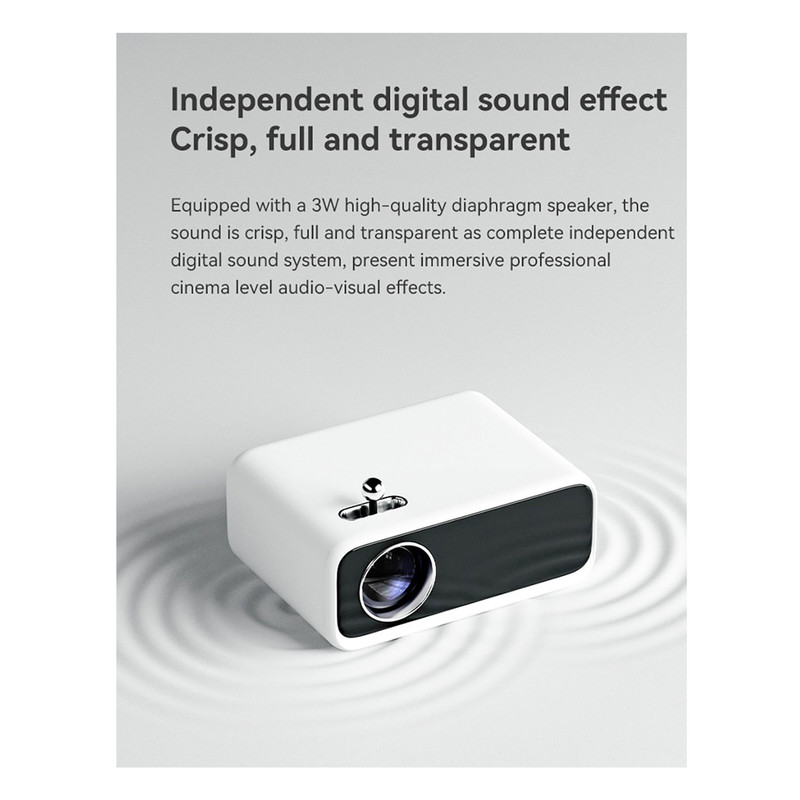 پروژکتور Wanbo Mini Pro دارای طراحی شیک و مدرنی است که هم از نظر زیبایی شناسی دلپذیر و هم کاربردی است. به اندازهای کوچک است که در کف دست شما قرار میگیرد و حمل و نصب آن در هر کجا که میروید آسان میشود. چه بخواهید از یک شب فیلم با دوستان لذت ببرید یا در محل کار خود ارائه دهید، این پروژکتور برای هر موقعیتی عالی است. همچنین پروژکتور Wanbo Mini Pro با روشنایی تا 250ANSI، تصاویری خیره کننده با رنگ های زنده و جزئیات واضح ارائه می دهد. رزولوشن اصلی 854×480 پیکسل را پشتیبانی می کند و تصویری شفاف و واضح را تضمین می کند. این پروژکتور علیرغم اندازه جمع و جور خود دارای اندازه پروژکتوری تا 120 اینچ است که به شما امکان می دهد هر اتاقی را به یک سینمای خصوصی تبدیل کنید. پروژکتور Wanbo Mini Pro نه تنها در عملکرد بصری عالی است، بلکه کیفیت صدای چشمگیری را نیز ارائه می دهد. با بلندگوهای استریوی داخلی آن، میتوانید از صدای فراگیر بدون نیاز به بلندگوهای خارجی لذت ببرید. با این حال، اگر تجربه صوتی شخصیتر را ترجیح میدهید، میتوانید به راحتی بلندگوها یا هدفونهای خارجی را از طریق خروجی صدای پروژکتور متصل کنید. پروژکتور Wanbo Mini Pro به گزینه های اتصال متعددی از جمله پورت های کارت HDMI، USB و TF نیز مجهز شده است. این به شما این امکان را می دهد که به راحتی دستگاه های خود مانند لپ تاپ ها، کنسول های بازی یا درایوهای USB را متصل کنید و از محتوای مورد علاقه خود بدون هیچ محدودیتی لذت ببرید. لنز نوری شیشه ای خالص با فوکوس بالا لنز نوری شیشه ای خالص با قابلیت فوکوس بالا که به تازگی ارتقا یافته است، به فوکوس شفاف کمک می کند و روشنایی بالاتر و کیفیت تصویر واضح تری ارائه می دهد. تصحیح کیستون چهار نقطه ای مجهز به تصحیح کیستون چهار نقطه ای، از برجستگی جانبی پشتیبانی می کند و با موقعیت قرار دادن محدود نمی شود. تصاویر مربعی را می توان بدون توجه به طرح ریزی کناری یا جلویی به دست آورد کیفیت تصویر ظریف وضوح فیزیکی 720P، پشتیبانی از رمزگشایی 1080P HD، وضوح بالاتر و تصاویر واضح تر را ارائه می دهد، واقعاً بافت ظریف تصاویر را نشان می دهد. جلوه صوتی دیجیتال مستقل مجهز به بلندگوی دیافراگمی 3 واتی با کیفیت بالا، صدایی واضح، کامل و شفاف به عنوان سیستم صوتی دیجیتال مستقل کامل است و جلوه های صوت