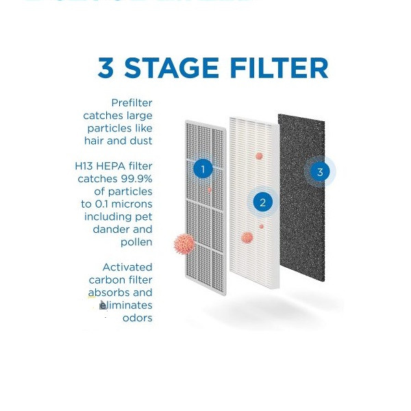 تصفیهکننده هوای Medify مدل MA-15 یک تصفیهکننده هوای قدرتمند است که طراحی شده است تا هوای محیط را از ذرات معلق، آلودگیها، بوهای نامطبوع و ذرات میکروسکوپی پاک کند. این دستگاه با استفاده از فیلترهای HEPA و کربن فعال، توانایی حذف ذرات ریز و مواد شیمیایی مضر از هوا را داراست. تصفیهکننده هوای Medify MA-15 قابلیت پوشش چرخشی حدود ۵۰۰ متر مکعب را داراست و مناسب برای استفاده در اتاقها و فضاهای کوچک تا متوسط است. این دستگاه دارای سیستم فیلتراسیون ۳ مرحلهای است که به شما کمک میکند تا هوای تمیز و سالمی در محیط خود داشته باشید. حداکثر پوشش: فضاهای کوچک تا 660 فوت مربع را در یک ساعت، 330 فوت مربع را در 30 دقیقه تمیز می کند (CADR 150). ایده آل برای خانه ها، آپارتمان ها، اتاق خواب ها، اتاق نشیمن، ادارات، مدارس، دانشگاه ها، کلاس های درس، بیمارستان ها، رستوران ها و سایر مشاغل. فیلتراسیون HEPA H13: برای حذف 99.9 درصد ذرات مضر از جمله آلرژن ها، بوها، VOCs، دود، گرده، شوره حیوانات خانگی، گرد و غبار، مه دود، آلاینده ها و موارد دیگر به اندازه 0.1 میکرون قابل اعتماد است. ذرات ریزتر از HEPA H11 (0.3 میکرون) را می گیرد. ULTRA QUIET: از بین 3 سرعت فن انتخاب کنید، با کمترین تنظیم تقریباً بی صدا. با ولتاژ 220 ولت با حداقل نویز 35 دسی بل و حداکثر 51 دسی بل کار می کند. برای محتاطانه ترین عملکرد، حالت خواب را فعال کنید تا چراغ های پانل دستگاه کاملاً کم شود. ویژگی های آسان برای استفاده: شامل یک صفحه لمسی شیک با تایمر 0-8 ساعت، سرعت فن، حالت خواب، نشانگر تعویض فیلتر و قفل کودک است که هم برای بچه ها و هم برای حیوانات خانگی عالی است. فیلترهای دوگانه به این واحد جمع و جور اجازه می دهد تا هوا را در هر اتاق به طور موثر تمیز کند.