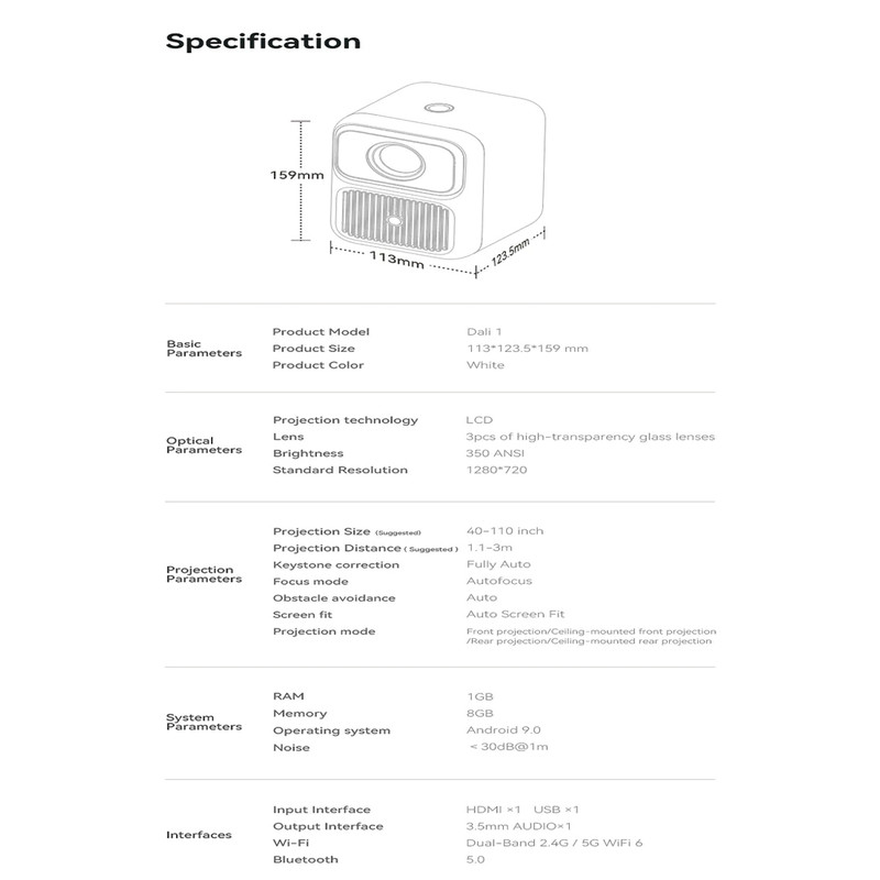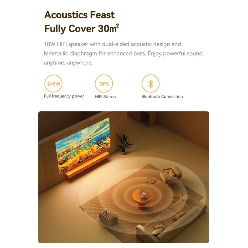 Wanbo Dali 1 یک پروژکتور پیشرفته است که قادر به نمایش تصاویر 720p HD و رسیدن به روشنایی تا 350 ANSI لومن است. این برای تماشای فیلم، بازی، ارائه ارائه و سایر برنامه های چند رسانه ای عالی است. دارای یک سیستم اپتیکال پیشرفته و کاملاً محصور PixelPro 5.0 است که مشکلات سنتی رایج در پروژکتورهای معمولی مانند روشنایی کم، اتلاف حرارت ضعیف و عمر کوتاه تر را از بین می برد. با استفاده از این فناوری، پروژکتور Wanbo Dali 1 روشنایی بالا، کنتراست عالی، خنک کننده کارآمد، عمر طولانی و نویز کم را در یک بسته جمع و جور فراهم می کند. چند رسانه ای غنی در زمان واقعی خود را در اقیانوسی بی پایان از محتوا غوطه ور کنید. پروژکتور Wanbo Dali 1 یکپارچه سازی با ویدیو از محبوب ترین پلتفرم های پخش مانند YouTube، Netflix، Prime Video، HBO Max، Hulu و Disney را ارائه می دهد. از فیلمها و سریالهای تلویزیونی گرفته تا موسیقی و برنامههای آموزشی کودکان، شما به آخرین بهروزرسانیها و انتخاب گستردهای از منابع با کیفیت بالا در دسترس شماست. صدای عالی که کل اتاق را پر می کند Dali 1 مجهز به بلندگوهای تمام برد هر کدام 5 وات و قطعات صوتی با کیفیت بالا، میتواند بدون زحمت فضای 30 متر مربعی را با صدا پر کند. به لطف فناوری بلوتوث 5.0، می توانید از پروژکتور به عنوان یک بلندگوی بی سیم در مواقعی که از آن برای نمایش استفاده نمی کنید استفاده کنید. خنک و بی صدا: کنترل دمای پیشرفته Dali 1 با کنترل هوشمند دما همراه با حالت خنک کننده گردشی با 2 فن، اتلاف گرمای کارآمد را تضمین می کند. علاوه بر این، عملکرد کاهش نویز عملکرد بی صدا را تضمین می کند. یک دهه تجربه در کیفیت تصویر Wanbo چندین دهه تجربه در کیفیت تصویر پروژکتوری را برای Dali 1 به ارمغان میآورد. این پروژکتور با استفاده از فناوری طیف رنگی بالا، رنگهای واقعیتر و کیفیت تصویر واضحتری ارائه میدهد.